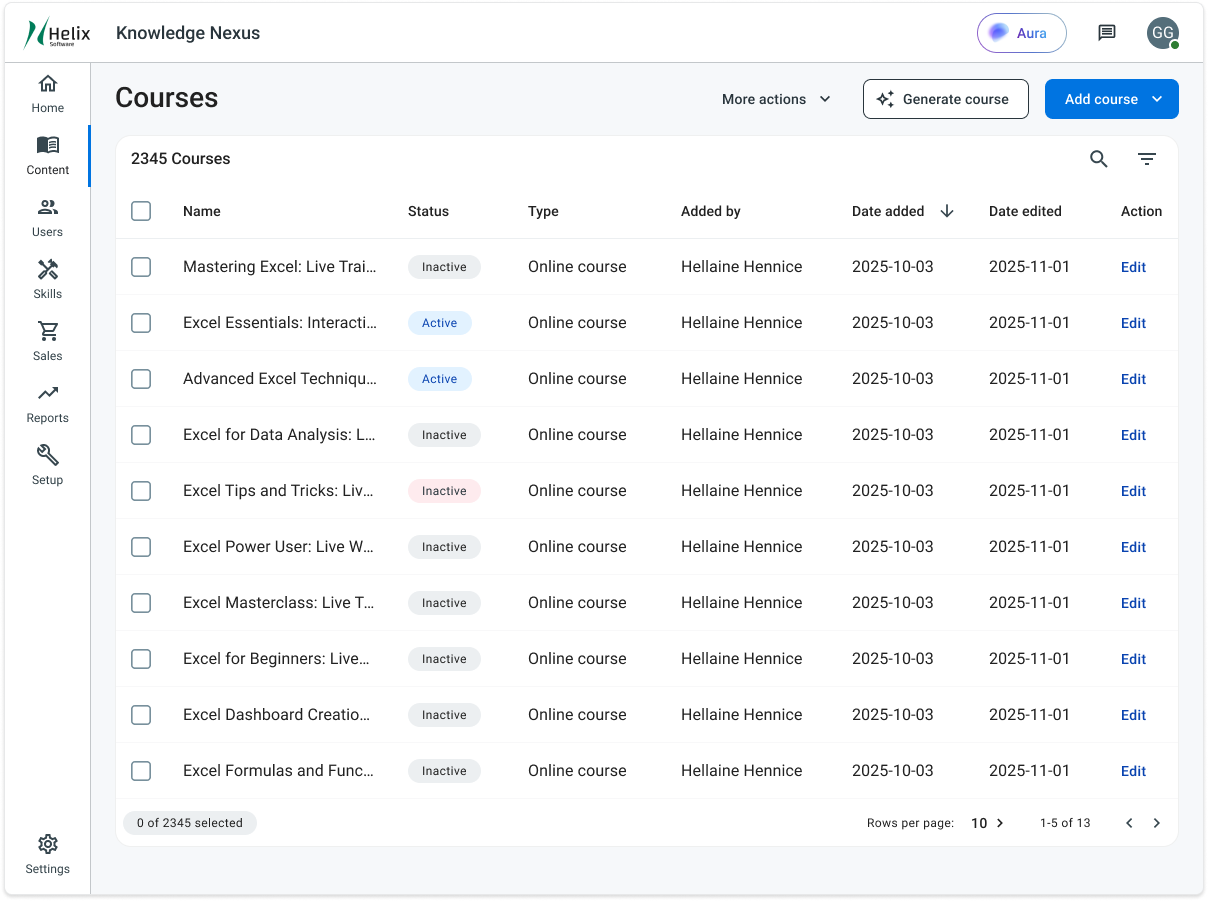 Instead of jumping between tools or managing disconnected drafts, admins can generate, review, and publish courses from the same place they already manage content. This streamlined workflow modernizes course management and keeps creation tightly connected to enrollment, reporting, and ongoing maintenance.