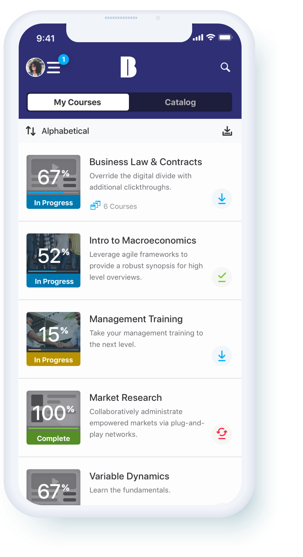 Learners have the ability to view their mandatory training or browse for their own. At a glance they can sort through a list of courses to launch, or quickly download for later use.